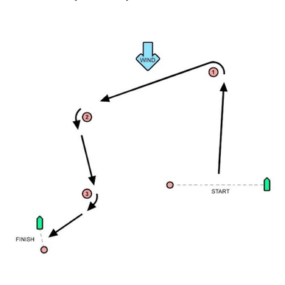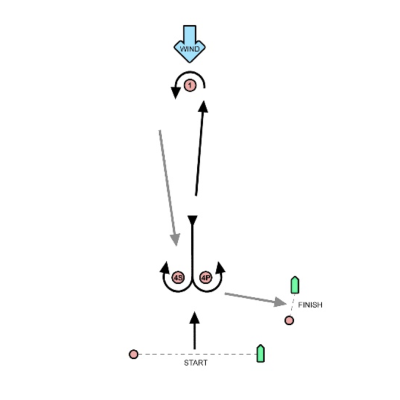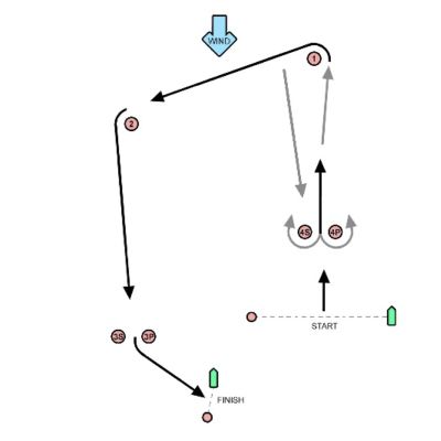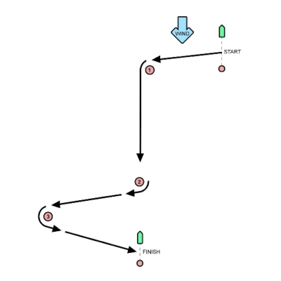 Nach dem Start segeln die Windsurfer zu der gegen den Wind liegenden Luvboje (1), danach vor dem Wind zurück zur Leeboje (4). Diese Marke wird oft durch ein Tor, bestehend aus zwei nahe beieinander liegenden Bojen (Leetor, 4s und 4bp), ersetzt. Die Boote müssen durch dieses Tor hindurch segeln. Sie können eine beliebige der beiden Bojen runden. Danach geht es wieder zur Luvboje (1) und ein zweites Mal zur Leeboje (4) oder je nach Kurs halbwind zu einer sog. Ablaufboje (2) und danach direkt oder via einem Gate (3) zu Ziel.